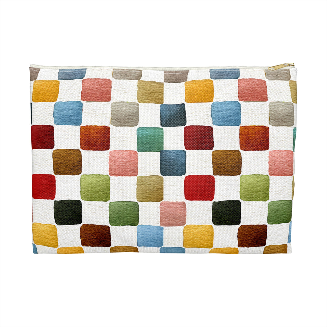 Multicolor Checkers Print Makeup And Accessory Pouch