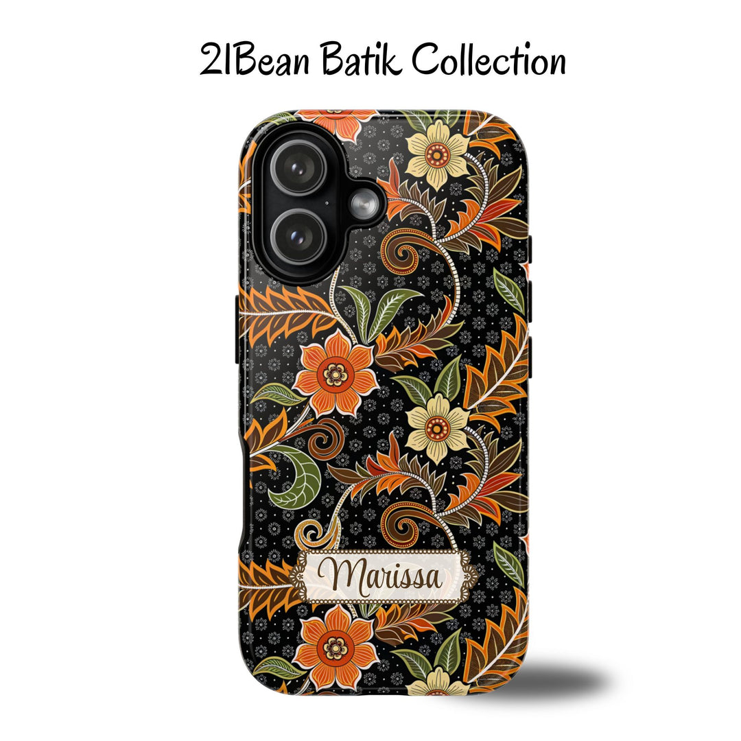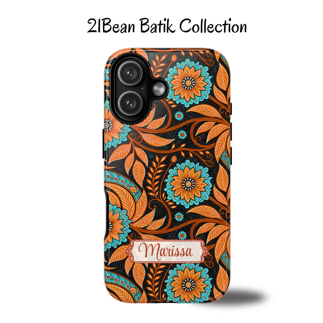 Traditional Batik Pattern Tough Phone Cases Personalizable - Orange Floral