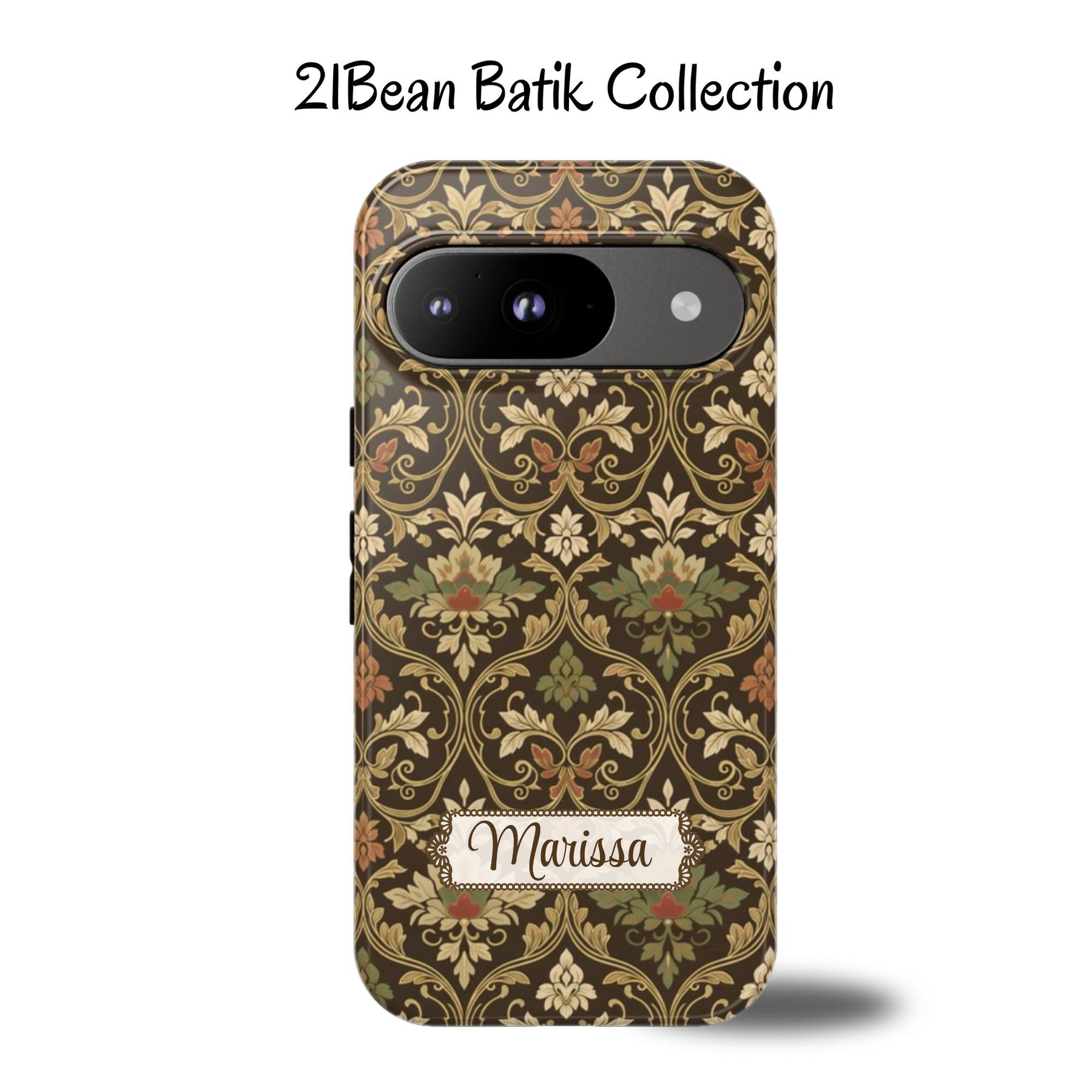 Tough and durable phone case with a traditional batik design that can be personalized with a name, monogram, quote, or Bible verses. This phone case provides excellent protection against drops and tears, making it perfect for adults who want a unique and personalized accessory for their phone. Ideal for gifts on birthdays, Christmas, or any special occasion.