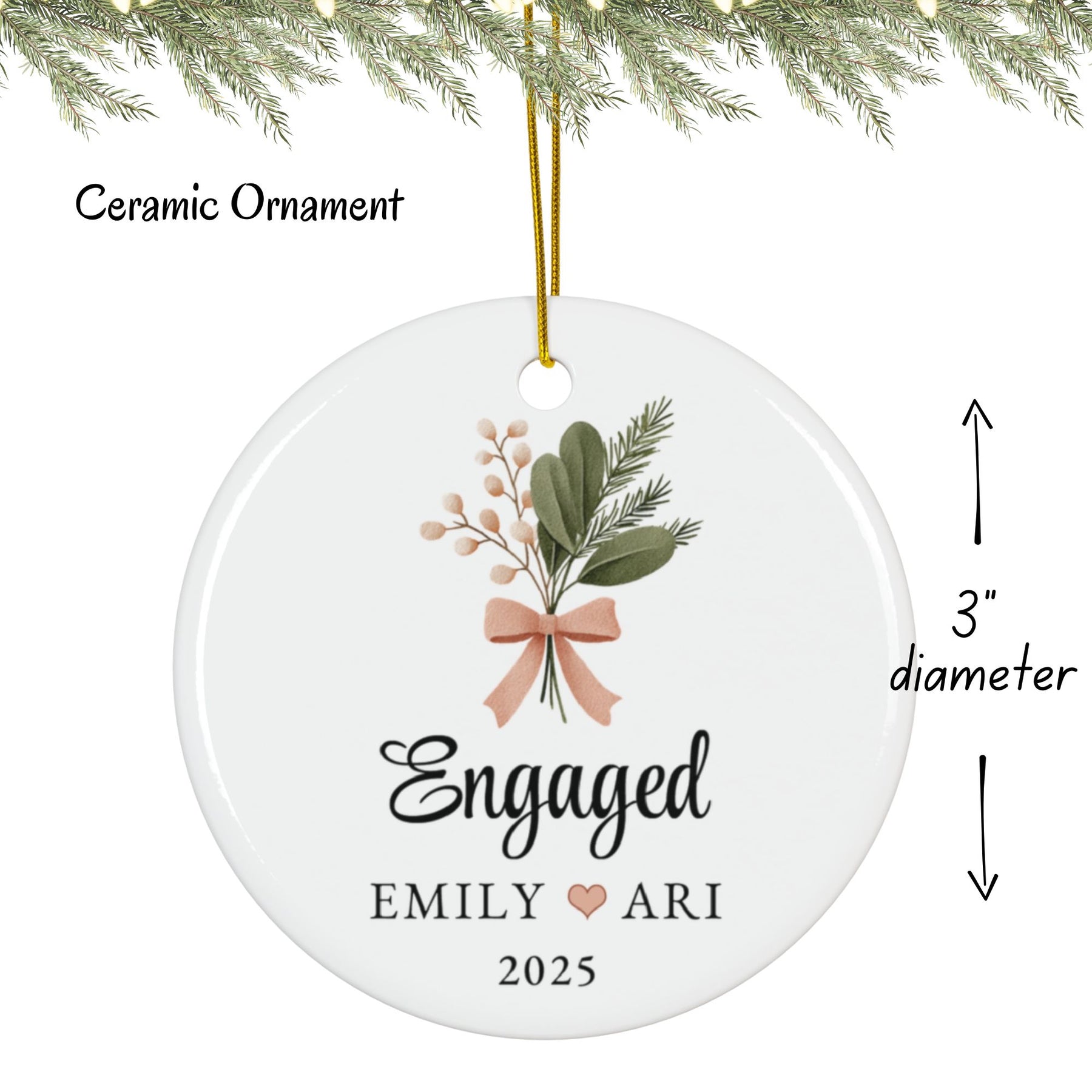 Engagement Christmas Ornament, Custom Hanging Christmas Ornament, Engagement Gift Christmas Ornament.