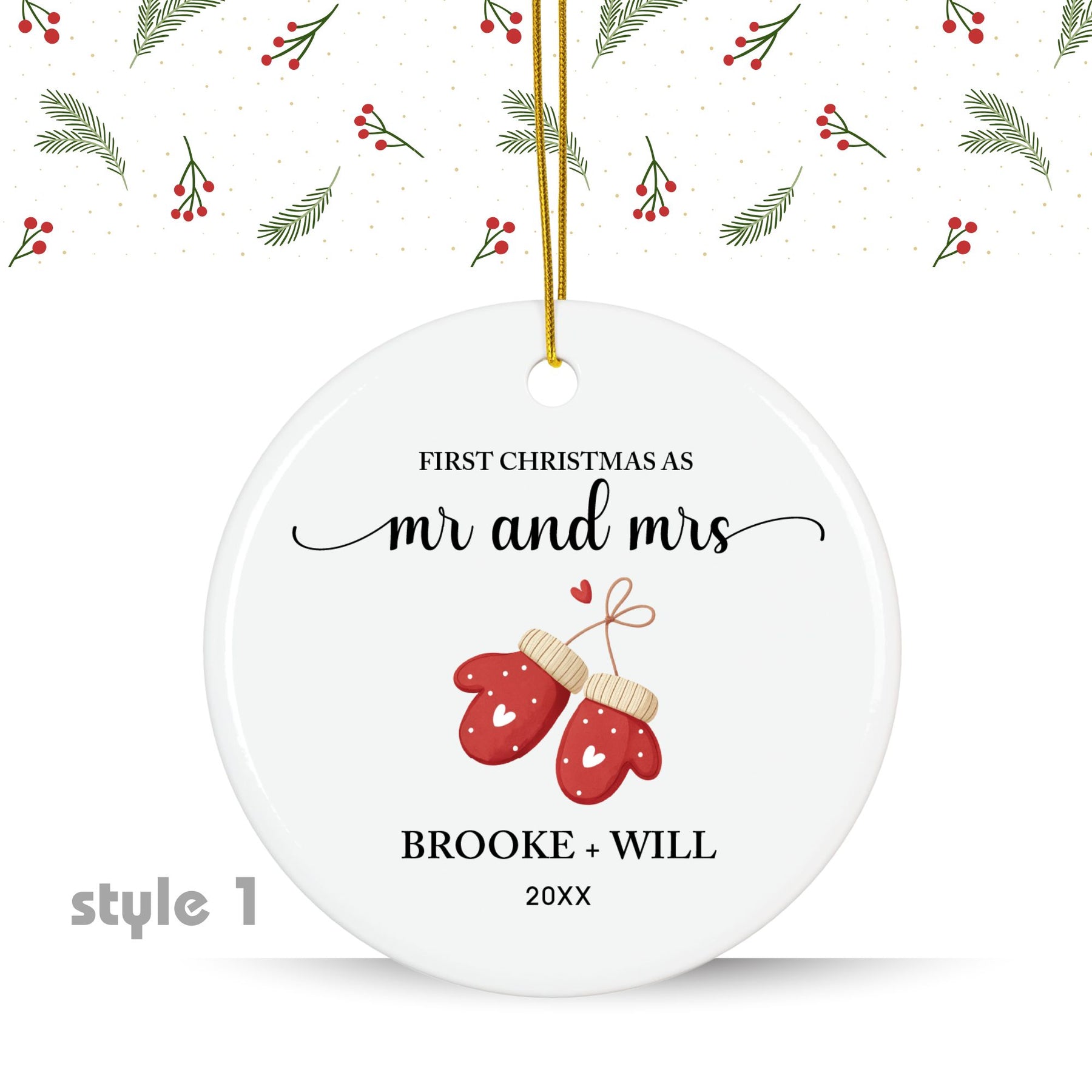 First Christmas Married Ornament, Custom Hanging Christmas Ornament, Wedding Gift Christmas Ornament.