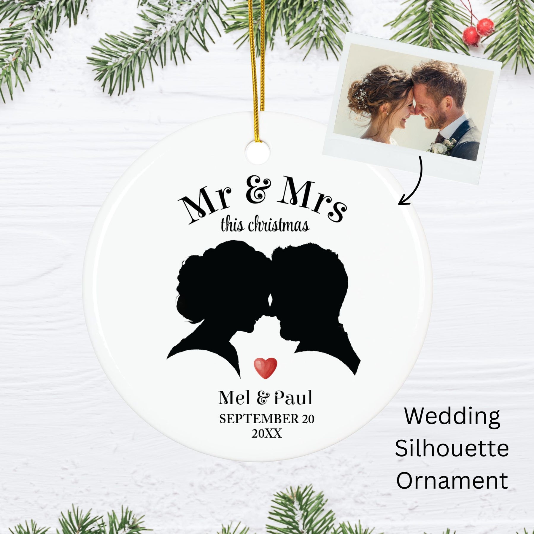 Couple Silhouette Ornament Christmas Ornament, First Mr and Mrs Christmas Ornament, Change Photo to Silhouette Picture Ornament, Custom Hanging Christmas Ornament, Gift Christmas Ornament.