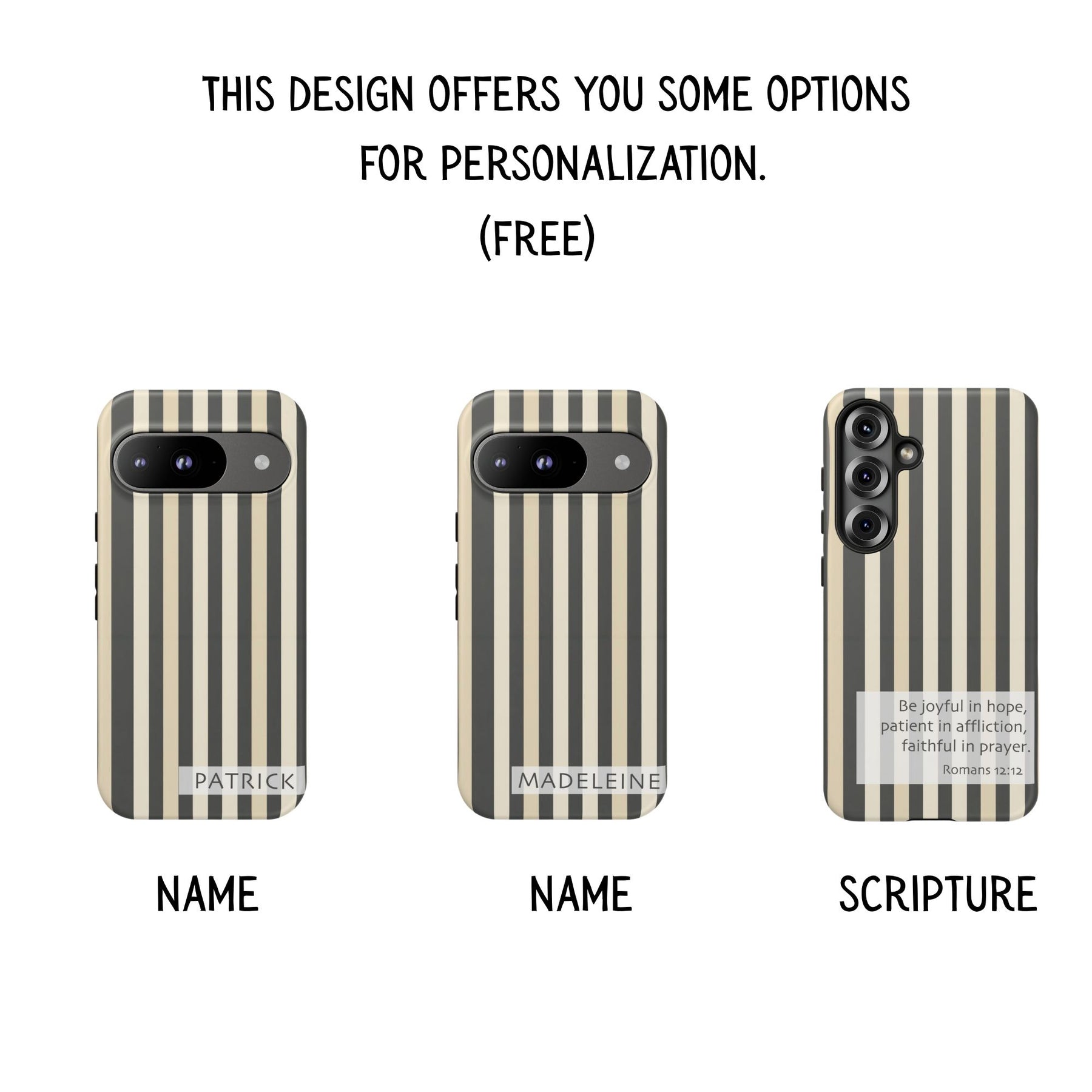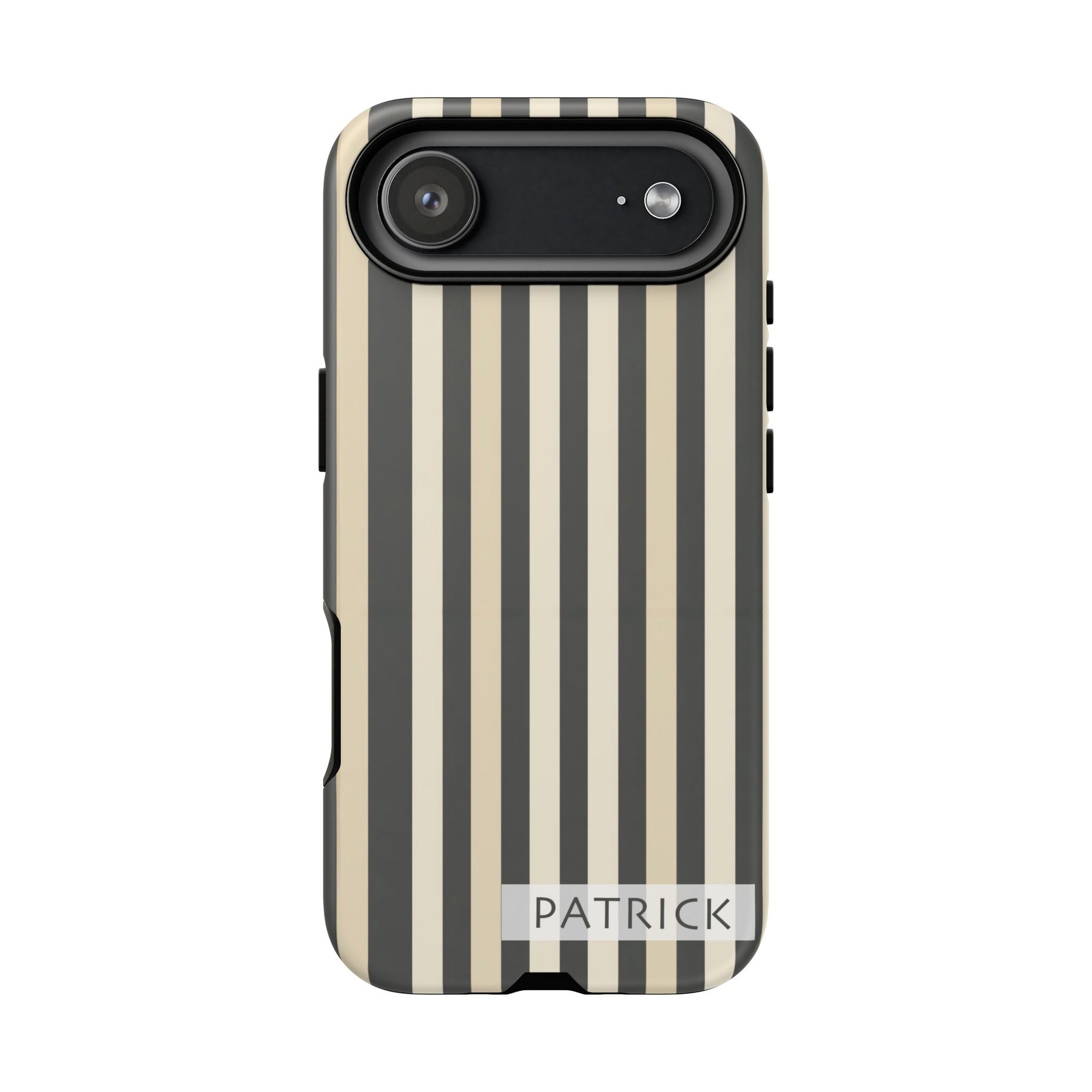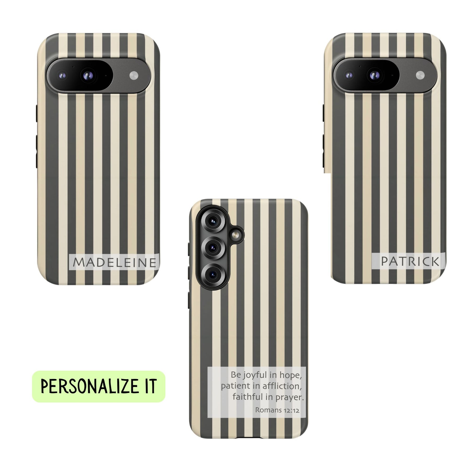 21A trendy and modern tough case phone for iPhone, Samsung, or Pixel with a brown stripe design customizable with a name or Bible scripture. Provides excellent protection against drops and tears, making it perfect for adults looking to keep their phones safe and stylish. Ideal for gifting on birthdays, holidays, or as a special occasion present.