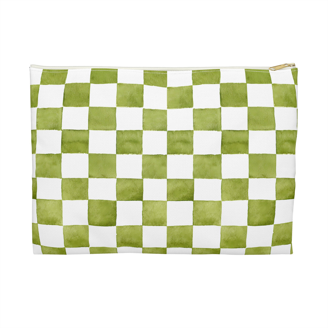 Green Checkered Print Makeup And Accessory Pouch