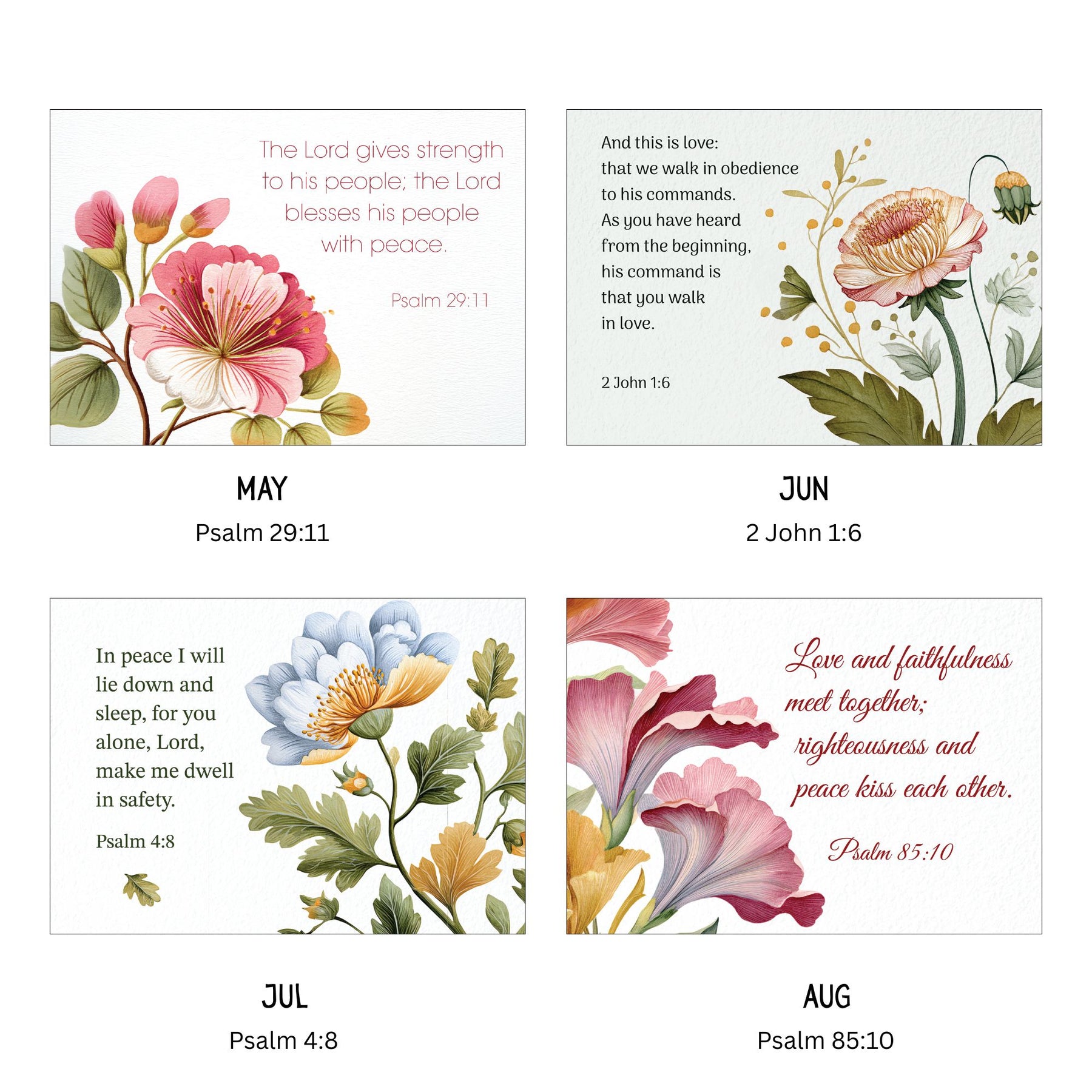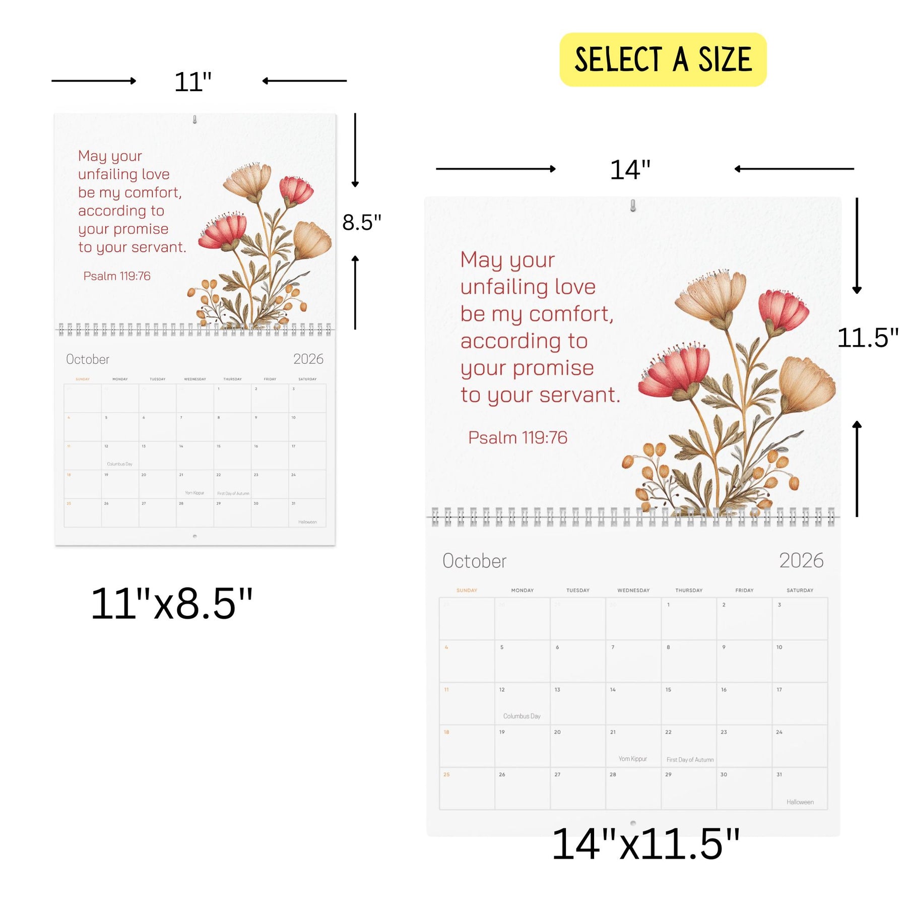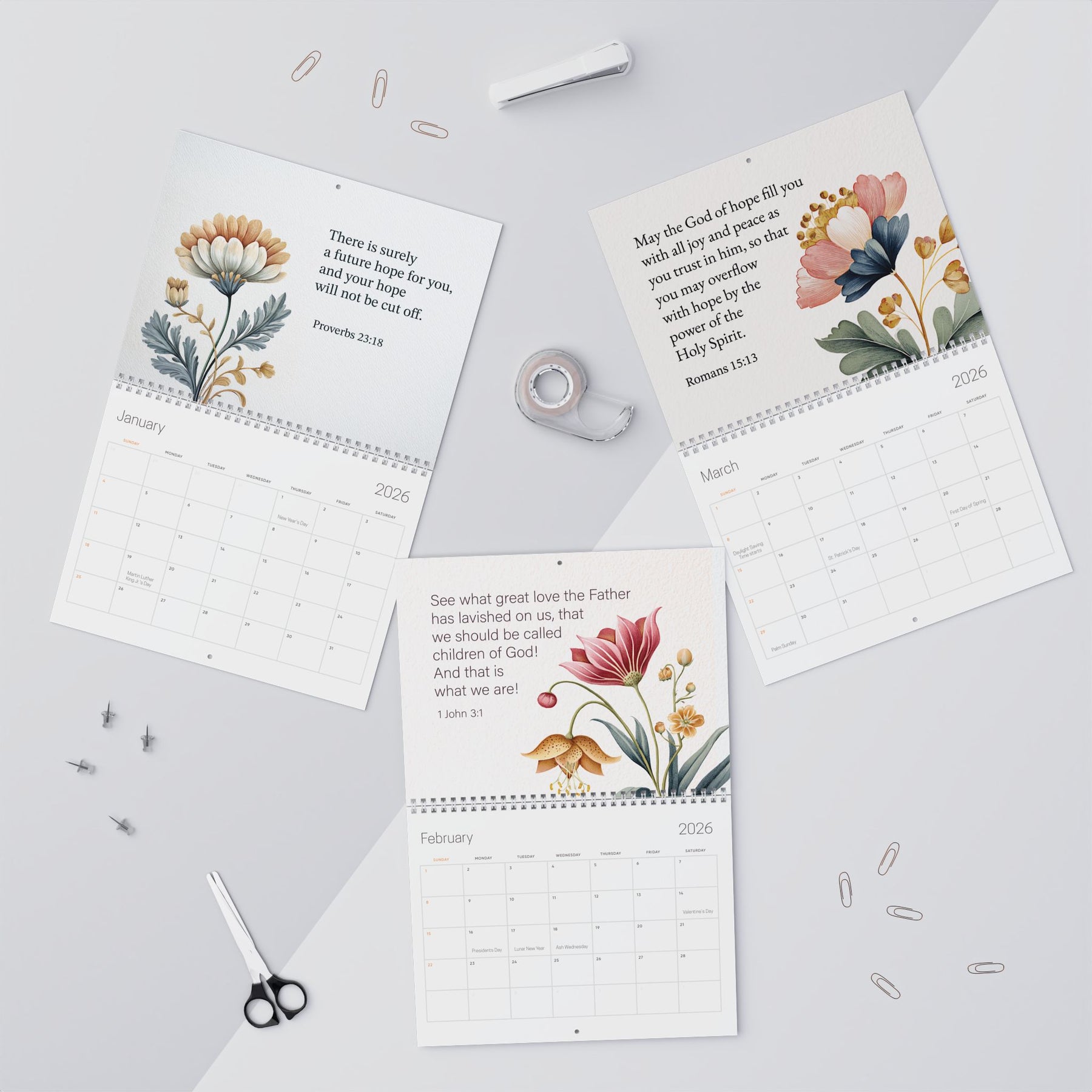2026 beautiful botanical painting flower calendar featuring custom scriptures, birthdays, anniversaries, and milestones.