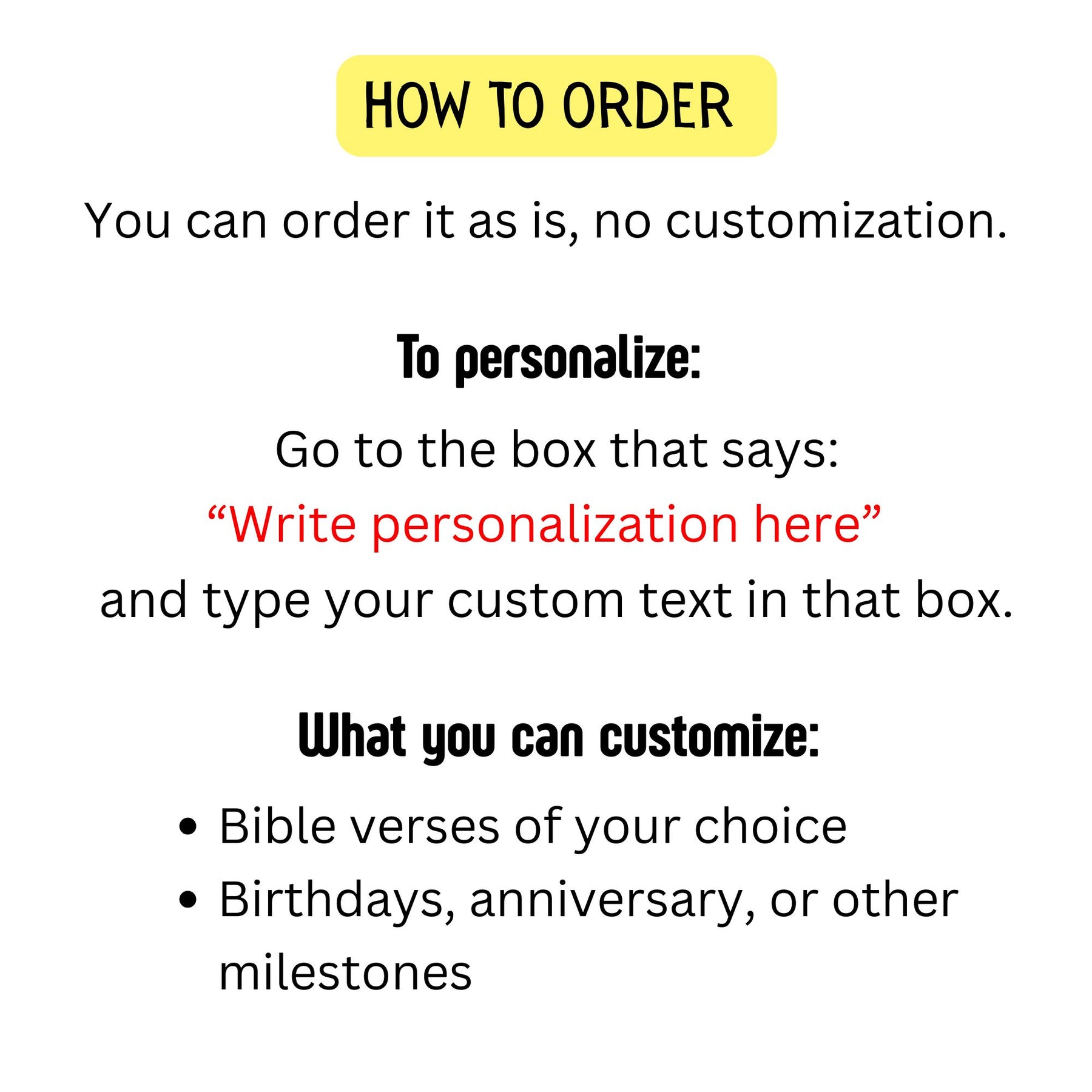 Go to "Write your personalization here", then type exactly how the name or the text should appear.